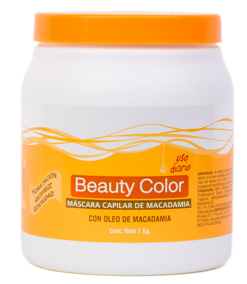 La Máscara capilar de Óleo de Macadamia Beauty Color es un elemento esencial de la belleza del cabello, contiene ácidos grasos, vitaminas y tocoferoles, incluyendo un complejo Omega, y fundamentalmente Omega 7, que permite ser usado aún en cabellos grasos.