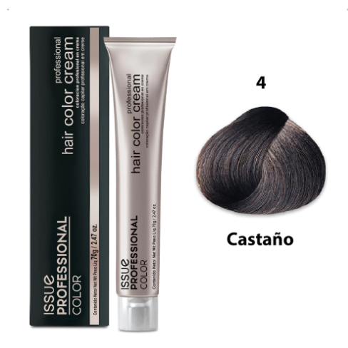 Mezcle el contenido del pomo de Coloración en crema Issue Professional Color (70 g) con 70 ml de Crema Oxidante Issue Professional Color (según el trabajo a realizar cambiarán los volúmenes de las Cremas Oxidantes Compatibles) hasta obtener una crema untuosa y homogénea. No utilice utensilios metálicos. Aplique con un pincel sobre cabellos secos y no lavados. El tiempo total de exposición, después de la aplicación, es de 40 minutos. Pasado dicho tiempo emulsione suavemente y enjuague con abundante agua tibia. Lave con Shampoo Issue Saloon hasta eliminar los restos de coloración y neutralizar la alcalinidad del tinte.